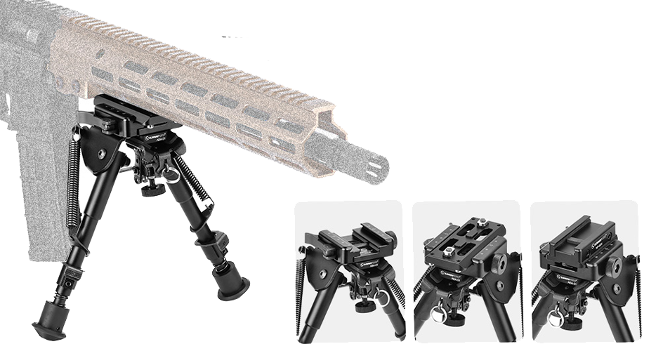 Используя адаптер ABA-01, вы сможете легко соединить сошки Harris с направляющими Picatinny, M-LOK или Arca-swiss.