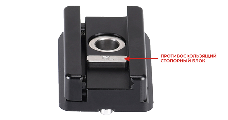 Вес всего 63,7 грамма. Встроенный стопорный блок предотвращает свободное скольжение рельса внутри паза.