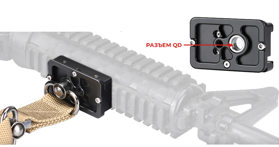 В основании имеется антабка QD Sling Swivel для работы с тактическим ремнем STR-01, легкое переключение между переноской и креплением оборудования.